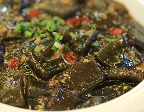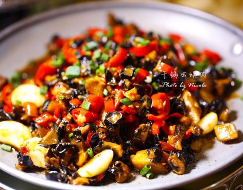 - 擂皮蛋很有特色,口感很特别,里面像一个绿色的辣椒,铁锅田鸡分量很足,我很爱吃
