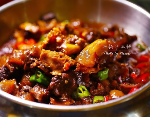 - 平锅牛三鲜 牛肚、牛腩、牛筋儿,正对我的胃口,从小就爱这筋头巴脑的,软烂入味,很赞