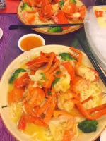 店面好大好宽敞,各种海鲜生猛地在鱼池游来游去。每次来都必点的一个菜,避风塘炒面包蟹,真是好鬼正阿!香辣到吮晒手指来吃阿!