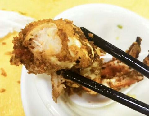 香辣到吮晒手指来吃阿!每次来都必点的一个菜,避风塘炒面包蟹,真是好鬼正阿