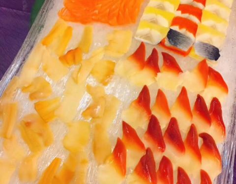 - 海参 ,海胆炒饭,三文鱼刺身等等海鲜大餐,公司聚会真是高大上的,定制的都是海鲜菜,这家厨师出品不错啊