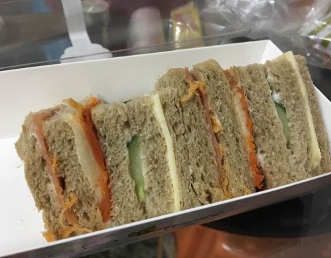 最喜欢店里的三明治了,芝士与青瓜、火腿、肉松完美结合,另外粗粮方包也很好吃,这次买了提子的,希望不要太甜。