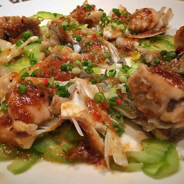 酥皮双皮奶外酥里嫩,很香甜回 煎酿三宝尖椒比较好吃,咬一口清新的感觉,另外两个鱼饼个人感觉口感一般 古法蒸鱼头半只鱼头吧,味道不错,合老公口味,不过苦瓜是真苦