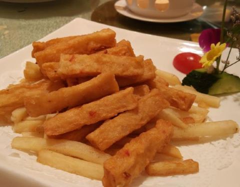 - ...经油炸而成,一上桌就得吃哦,不然攤冻咗走咗气外皮唔脆就唔好吃了,拌碟的薯条感觉也比老麦的药好吃