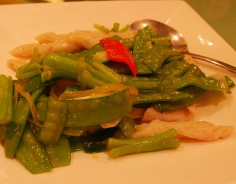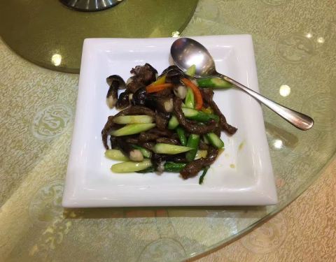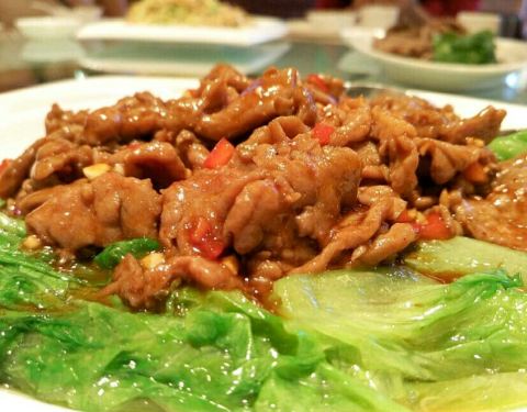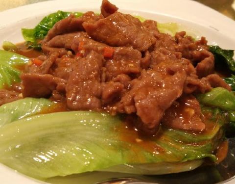 香炸百花胶,里面应该是虾胶,口感爽滑。 沙茶拌牛肉,牛肉嫩滑,沙茶酱味道也很好,最爱这个菜