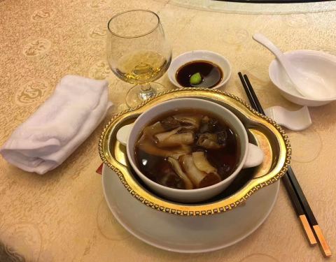 - 桂花炒鱼翅,色泽分明,香而不腻,脆而不干,口感甚好,色、香、味、形俱佳