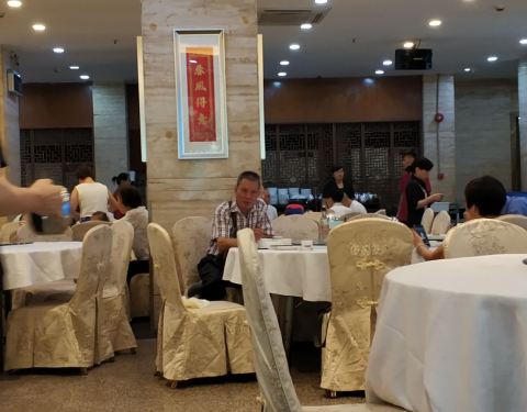 - 平常来这里喝早茶的,可以一直到中午吃饭,可以说是早茶直落。菜馆的门前是公交车总站。周末真是人太多了