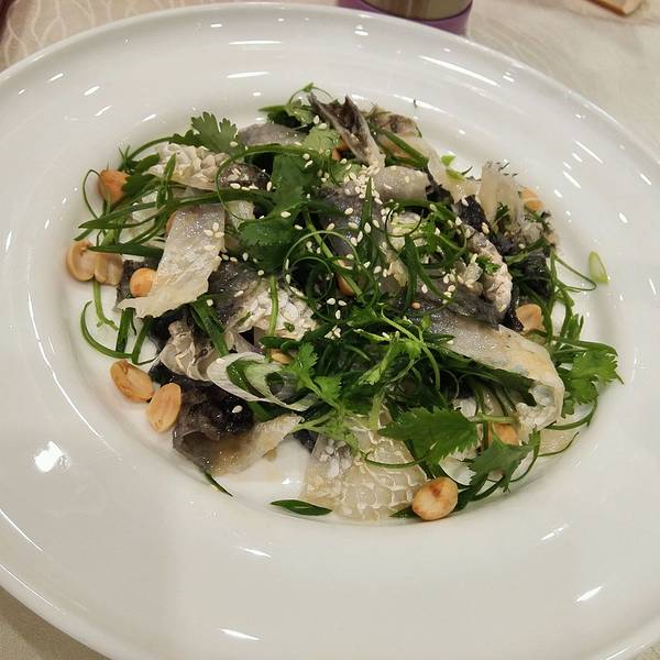 这家御口福饭店我经常去,就在远景路韩国商业街的入口处,非常好找,坐公交车的话可以在远景路站或者白云区政务中心站下车,有244、 810、298、475等多路公交车经过,如果自驾车前往的话,门口就有地方可以免费停车。餐厅最近两年才装修过一次,所以环境优美,最别的是有两个大大的鱼缸,里面养了好多银龙鱼,每次吃饭看见好多小朋友在围观,看见就不肯走了。这家饭店以粤菜为主,特色菜有烧味,比如烧乳猪,叉烧,烧鸭,乳鸽等等,还有各种海鲜是按斤售卖的,不过个人认为按斤卖的海鲜比较贵,所以很少点,之前有特价的虾倒是不错,如果遇见就不要错过。早茶,中午茶,下午茶市都有,消费100送50元券,只能是晚上去使用,用的时候特价菜不能使用,100元可以用一张50的券,以此类推。说说菜的味道,大多数菜的出品还不错,比如手撕鸡,凉拌鱼皮,泡菜鲈鱼,卤水拼盘是我经常点的,还有大盅的炖汤非常好吃。菜的价格最便宜的是小菜,比如凉拌牛肉28元,一般最最普通的菜是38元,贵的就很贵了,如果不点海鲜什么的,一般人均80元左右的消费水平吧!