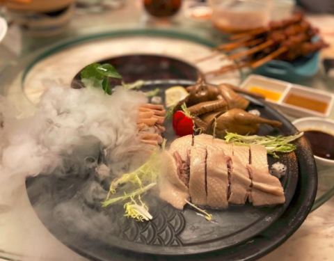新兴出名的菜色就系吃羊,冬天最好就系打羊煲,暖胃。 点咗几个菜再加羊煲,羊煲就需要一边加热一边自己再煮,否则D羊系未够淋的。 首先上菜的都系白切鸡,餐宴必不可少的,造型都几靓。由于羊煲未吃得,所以呢碟...