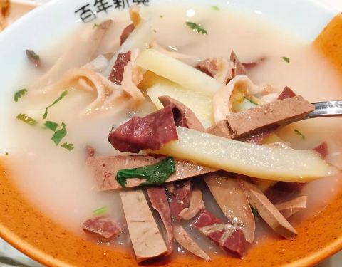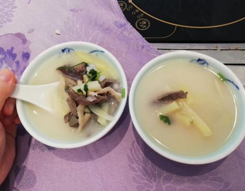 - 新兴出名的菜色就系吃羊,冬天最好就系打羊煲,暖胃。羊肚就比较韧,而且有少辣,味道就一般般,适合送酒