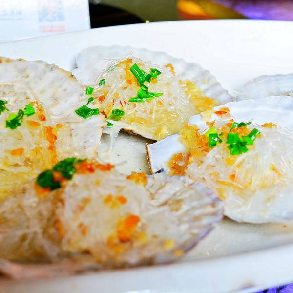 两元大餐真的良心又好吃! 「蒜粉蒸元贝」粉丝很多很入味,最喜欢这道菜了。元贝肉很大