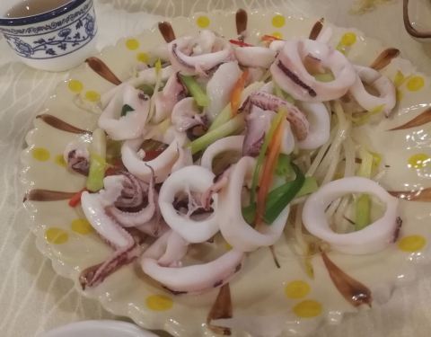 - 白灼鱿鱼,鱿鱼很新鲜,口感偏软软的,可惜就是份量太少。原本想点蚝烙,但可惜蚝都卖光了。总体感觉一般般