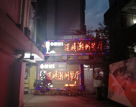 这家迈姨餐厅位于巷仔里的停车场旁,如果不是跟着导航来也不知道这里有间潮州菜餐厅。 周末晚上来到还挺多人的,这里的主打潮州菜,价格比之前常去的一家潮州菜稍微贵一些。原本想点蚝烙,但可惜蚝都卖光了。点了大家都推荐的炒薄壳,小小的一颗,肉还挺饱满的,味道也很香很不错。白灼鱿鱼,鱿鱼很新鲜,口感偏软软的,可惜就是份量太少。卤水鹅肝,卤水的味道不太够,有点淡,味道感觉一般般。牛肉炒芥兰,牛肉炒得比较老。总体感觉一般般。