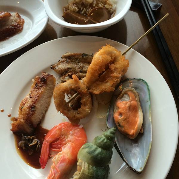 号称广州最好吃的自助餐,品质保证,种类繁多。海鲜特别新鲜,所以生鱼片很好吃。还有海参鲍鱼,焖得非常入味。焗龙虾味道鲜美。烧腊烧鹅广州风味,色香味俱全。