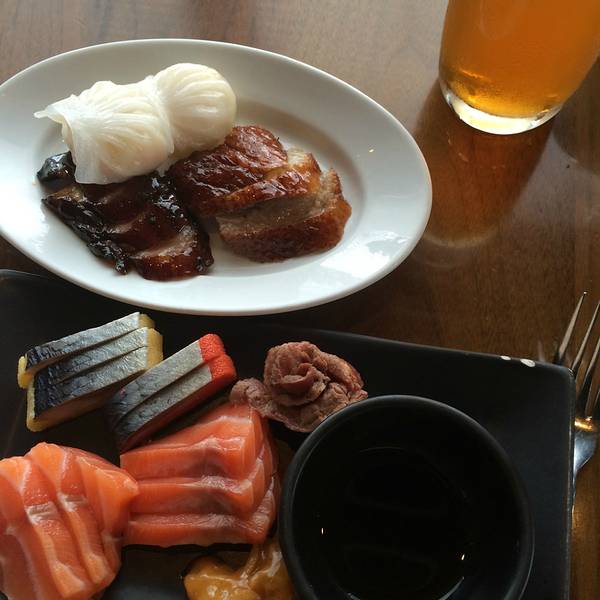 - 还有海参鲍鱼,焖得非常入味。海鲜特别新鲜,所以生鱼片很好吃。烧腊烧鹅广州风味,色香味俱全