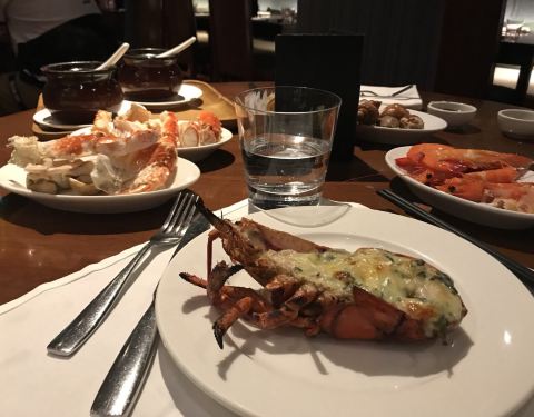 晚上有龙虾鲍鱼海参 很丰富 出了价格贵了一点 其他都还好 建议晚上去 顺便可以看夜景 需要提前约时间