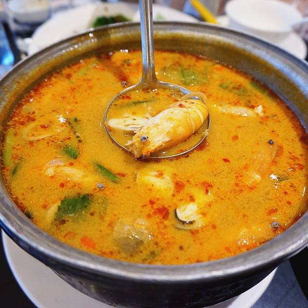 上面说了,其实在沙面也有一些的餐厅,但多是咖啡馆酒吧性质,在外围,而在里面吃饭的地方其实并不多,最出名的是这家兰桂坊,它家在沙面有两家,相隔不过100米的样纸。这家其实吃过很多次了,最出名的要数乳鸽(曾经吃过,非常好呢~),但我们今天没有点,想试试其他的嘛。我们6点到的,已经开始排位,但他们上菜快,翻桌率高,所以也不用等太久,大概15分钟的样纸。冬阴功,例牌68元,分量还是蛮大的,而且味道很好,酸辣及浓度都很够,唯一不足的是下面没有点火啊,所以最后就凉了,冬阴功汤怎么能凉着喝呢?!!!大大减分呀!菜单上必点的苦瓜,更是失望!苦瓜其实就是白灼嘛,配上芥末酱油,它和冰镇苦瓜的距离不过是“冰”以及零零星星的柴鱼片……猪颈肉,大失所望,太硬太硬太硬!!!饮品,青柠的还不错,百香果的有点难喝。如果是今天这几道菜的出品,我们最多只是给个3.5星,而因为这顿饭吃完以后巨渴,所以我们又再减了0.5星~悲催了,它的点评分数要被我往下拉了!!