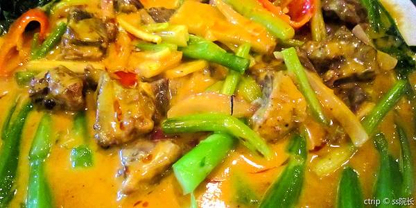 那个榴莲煎饼是真的好吃。点了网评上推荐的红烧乳鸽、虾油膏炒饭,还点了咖喱牛腩、榴莲煎饼