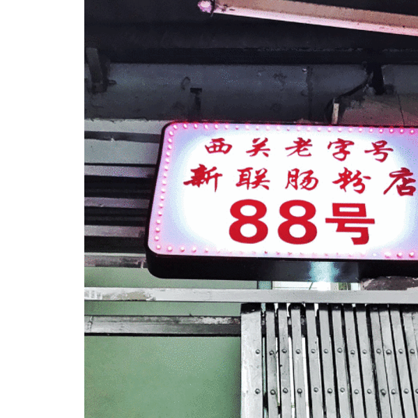 荔湾区比较多店的是银记,但因为它的店面之多而让我有些警觉,害怕是比较商业化的肠粉。于是上B站看了很多当地人的推荐视频,发现新联肠粉这家得到了很多靓仔靓女的力荐,都说是道地的布拉肠粉,是小时候的回忆。于是决定绕开银记,来多宝路的这家西关老字号。小小的招牌要抬头注意看才能发现门口的老阿婆看起来完全不care来来往往的客人,所以先把到底要吃什么研究好好,然后快速地和她讲,付钱,拿号码牌。这里好像只收现金的,没有二维码可以扫。不同颜色的牌子代表不同的菜品,付好钱把牌子拿给里面正在制作的店员就好,粥仔比较里面,肠粉就在门口,给完牌子以后找位子坐下来等着。看看这价格,还有哪里能找到7块的牛肉肠和8块的鲜虾肠?超有个性的收钱阿姨我们在门口找个位置坐下来。店面非常小,大家都挤在一起坐。不锈钢的台面,圆凳子自己搬。也可以选择外带走慢慢享用。台面贴着墙,背后就做肠粉的锅炉,看着忙碌的厨师和冒着热气的布,充满了市井的温度。熟练地处理粉皮看呆我很快我们的鲜虾肠粉就来。雪白的颜色,油光闪亮的外表,看起来就口水直流。半透明的粉皮还透出虾子的粉色,太诱人啦。布拉肠粉比我以往吃过的肠粉都软糯,很多层叠在一起,但也入口即化。虽然端上来的时候觉得很多酱油,但吃到最后真的一滴酱油的不剩,感觉酱油都渐渐被吸入了粉皮。虽然只要八块钱,肠粉里却有三只超大的虾仁,超级过瘾!来新联肠粉吃布拉肠粉,不仅是美味,更有做一回当地人的感觉,听店家和熟客聊聊天,看老人带着孩子来吃一代又一代人忘不掉的味道,和陌生人挤在一起,挤在粉皮的蒸汽里。