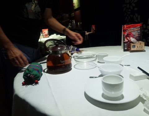 - 绝对称不上是舒适的用餐环境。 「荔枝香木烟熏乳鸽」是新推荐菜式,推广的材料摆在桌头。非常粗糙