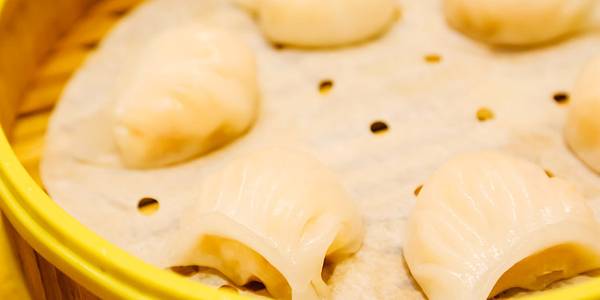 在这里早上我最喜欢的点心是虾饺 透明的皮包着一整颗虾仁 皮薄料足 晶莹剔透。