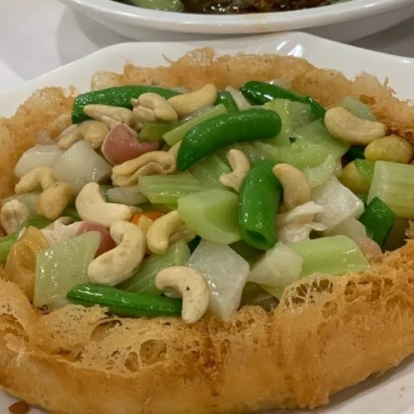 文昌鸡,完全剔骨,中间夹了一片文化火腿下面还有一片鸭肝,口感丰富,味道层次分明,第一次吃这道粤菜,印象深刻,值得一试。