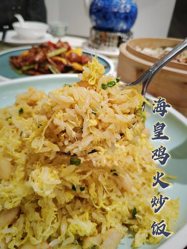 碳水使人快乐🌞 ,看着隔壁桌的炒饭,居然有点流口水,果断来一份|海皇鸡火炒饭^,金黄金黄的看着就觉得很有食欲😋 ,里面有鸡蛋丝和鸡肉粒,直接干饭我也能吃2大碗🈵 🈵