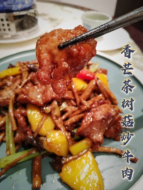 |香芒茶树菇炒牛肉^🐮 荤素搭配很营养,这道菜还很下饭,加入香甜芒果🥭 带了点清新,吃起来不腻