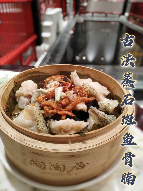 |古法蒸石斑鱼骨腩^🐟 鱼肉有点结实但是挺嫩,搭配红枣丝、瘦肉丝、木耳一起蒸,味道很香