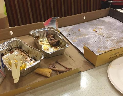 包含一个12寸的大披萨,一份鸡翅,一份掌中宝和三大杯茶,两大两小吃刚刚好吃光,对于孩子来说是美味大餐