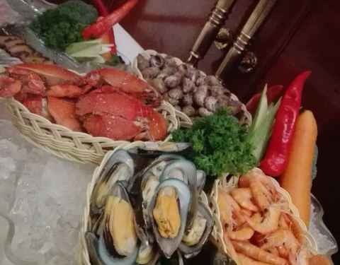 这里的自助餐品种还挺丰富的,海鲜、刺身、饮料、啤酒、香槟、雪糕、水果等好多好多的食物,只不过只有周五、周六和节假日才有的吃。其实只要你是能吃的大胃王,真的可以把188元的三文鱼、海鲜等成本吃回来,而且...这里的自助餐品种还挺丰富的,海鲜、刺身、饮料、啤酒、香槟、雪糕、水果等好多好多的食物,只不过只有周五、周六和节假日才有的吃。其实只要你是能吃的大胃王,真的可以把188元的三文鱼、海鲜等成本吃回来,而且还享受了五星级酒店的服务,物超所值。今天我是第一个冲进去的食客,全部食品都是刚刚端上来的,甚至有些还没有拆保鲜膜、、、、、、