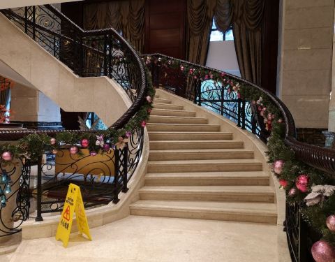 艾薇格兰西餐厅是恒大酒店的西餐厅,就在恒大酒店的一楼,环境跟酒店一样的装潢,都是走欧式奢华风,旋转楼梯,吊灯等,因为临近圣诞这里还摆放了很多圣诞的装饰,还有很多的娃娃。 早餐是在酒店的一楼艾薇格兰餐...