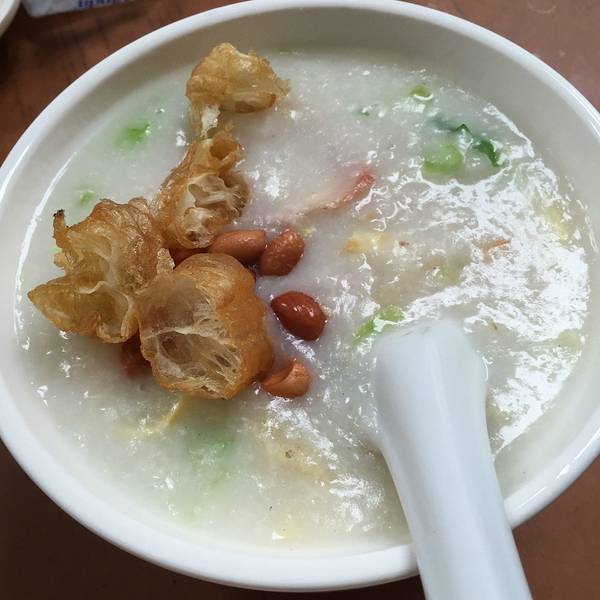 酒店附近就有一家银记肠粉店,这个也是网上推荐过的,中午去的,便宜又大碗,点的是牛肉肠粉和艇仔粥,好吃!