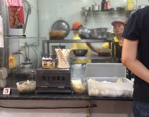 老牌门店了,最早的时候做这个潮州还是开放式的厨房,现在都隔起来,有个玻璃门的,周边很多居民都跑来这里买牛肉丸的,以前都是暗斤来买的。能生存到现在可想而知,味道是被人认可的。