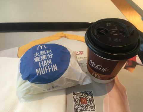 周日的早晨由6元火腿扒麦满分组合开始,可以配豆浆或咖啡。个人对M记的咖啡不大感冒,所以选择不豆浆,豆浆看以前的报道说是豆浆粉冲出来的,这次一喝,信了,感觉不够浓稠,满满的速溶豆浆味。不过,早餐填饱肚...