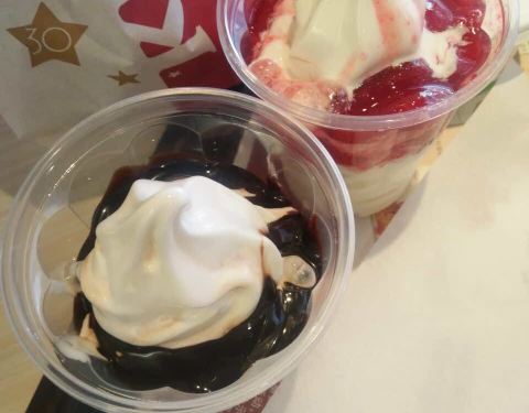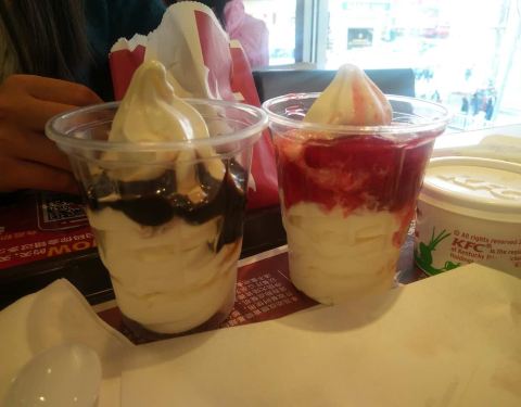 草莓圣代多半杯我也就算了,这巧克力圣代刚刚半杯多一点点吧,没有对比就没有伤害,怎么别家吃都是满满的呢……