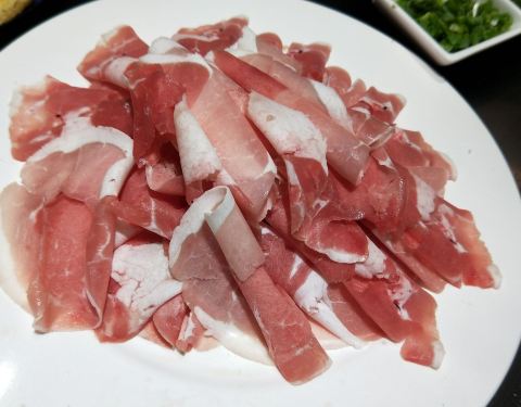 非常正宗的羊肉,牛肉片,红白相间,新鲜,肉质嫩,入锅即熟,菜品齐全,时蔬鲜嫩。自制涮料非常非常好吃,一定要尝试。也有麻酱小料。。饭店挨着宣化人民公园西门。吃完饭,可以去公园散步。
