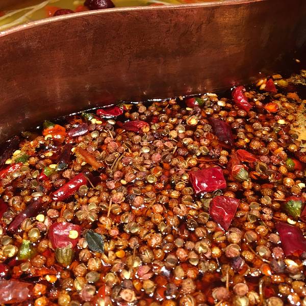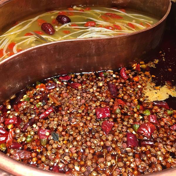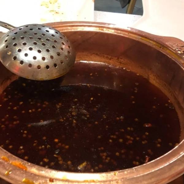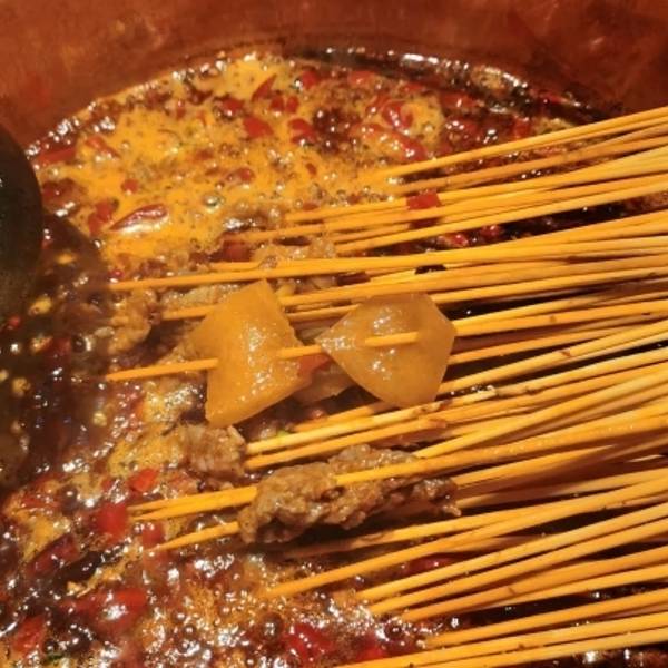 由于人多我们分了两车打滴滴到科华路,我们下车后不由分说地走进了第一家店,还点了锅底……然后锅底和茶水都上了,才知道不是这家,于是我们灰溜溜地走了……不要喷我哈,我也挺不好意思的,老板也说不要紧,让我们不得不感叹成都人的热情和豁达!在这里必须赞一个! 我们来得早,知乐香串坊还没有什么人,一锅汤端上来,看到漂浮在上面的花椒有人欢喜有人愁,哈哈哈哈哈,我当然甚为欢喜的哪个咯! 这里的牛肉有卷这折耳根的,还有芹菜的,种类很多,我比较推荐的是小土豆还有南瓜、莴苣,关于肉大家可以自由发挥!人均消费65元。