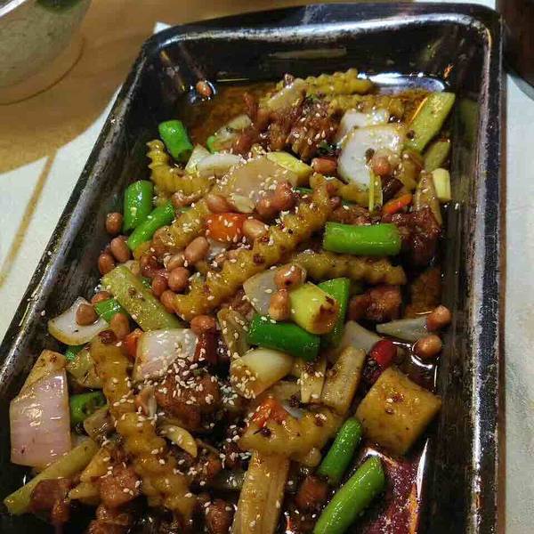 在川师的南门正大门,校园春天广场二楼,吃了很多年了,这里应该是最老的一家店了,里面很好吃的是莲藕排骨汤,冬天喝很暖和,干锅里面的干锅猪蹄虾也很好吃,还有炼乳木瓜,人均消费在60元左右,下面还有一张中餐都是一家的。