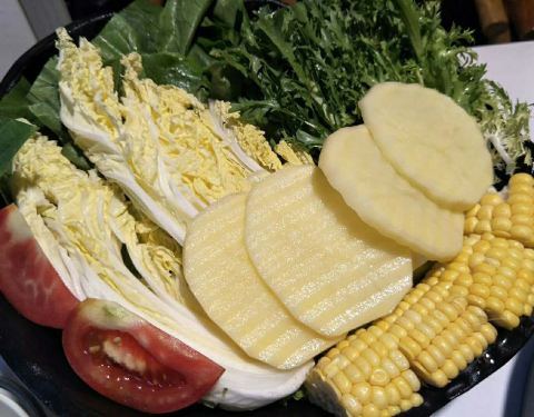 锅边馍脆脆的很好吃,大嘴酱香龙骨味道也很好,卤味十足,阳光番茄排骨汤锅,份量挺足的,也好吃,排骨入味