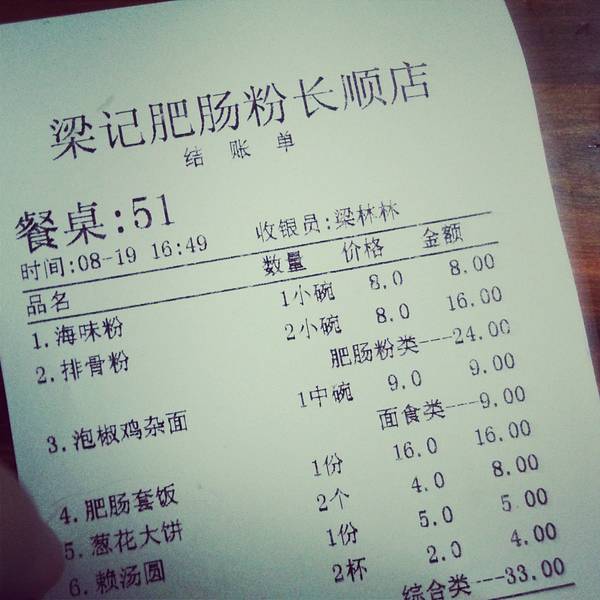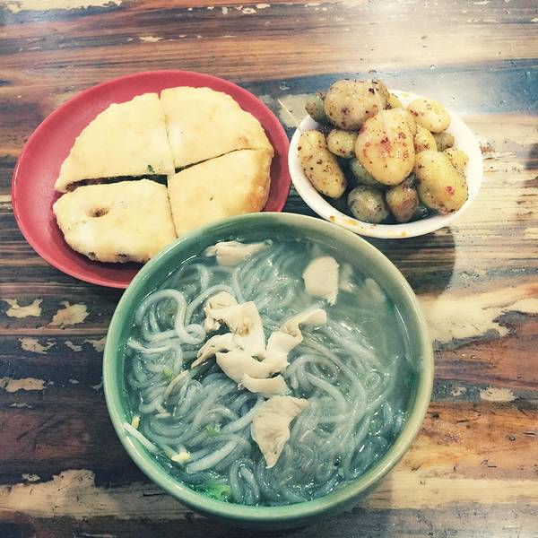 买了一碗肥肠粉,一份锅盔。对肥肠粉非常赞,粉儿软软糯糯的,非常好吃,汤的味道也很好。 锅盔外边的皮儿很酥很脆,里面有一点肉馅,超级好吃,遗憾的只吃了一份,真的还想再吃。
