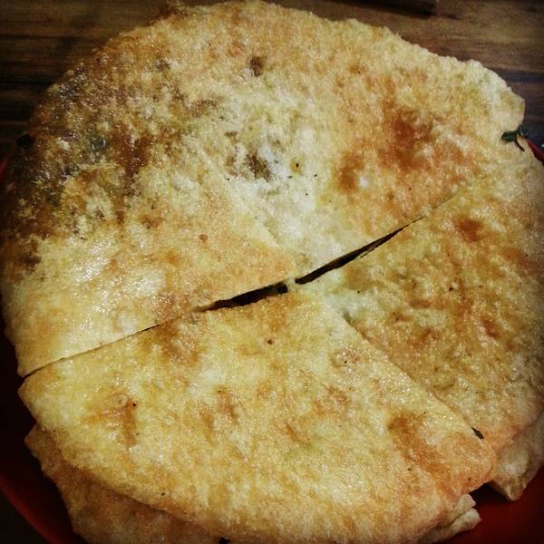 - 葱油饼外皮酥脆,配上清香的葱花和肉末,很爽口实用