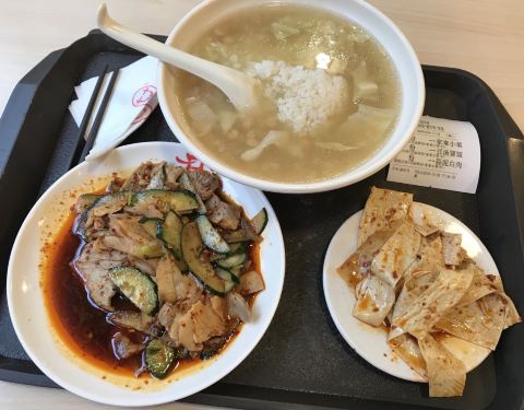 點了蒜泥白肉+豆湯冒飯+家常小菜套餐,付了14.5人民幣,性價比很高,口味也還不錯,份量挺大,吃飯地方大,乾淨度也可以,就是服務一般。