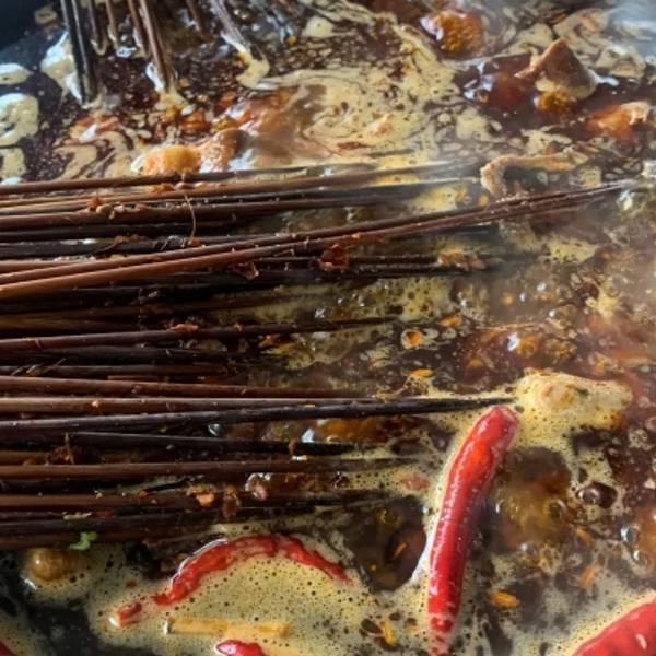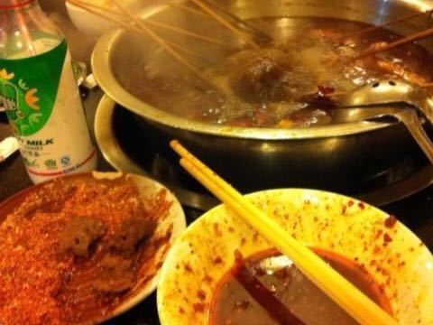 再次去刘老大串串女,配着红酒好有感觉,客人很多,味道很棒,直接配好的调味碟加上原汤,味道浓郁香辣,沾着煮熟的牛肉,土豆坨,味道巴适惨了