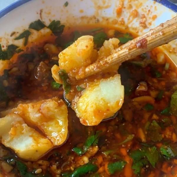 在街道上门口不好停车,只有在隔壁街停好走过来,一路就闻着这个香味走过来,原汤碟非常好吃。从来都是油碟的我一下子爱上这个原汤碟。辣的够味,辣的吃了还想吃