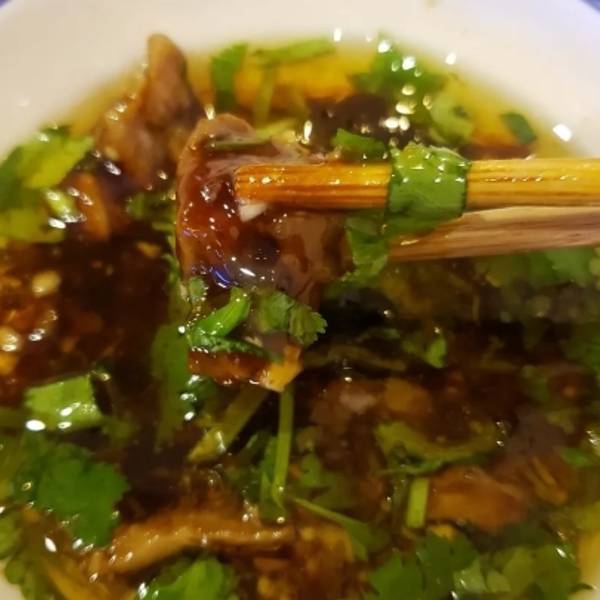 原汤蘸碟里面有很多小料比油碟来的惊艳最推荐他家的牛肉码过料不仅非常入味还很嫩很好吃唯一不好的是完全没法停车这点很不方便