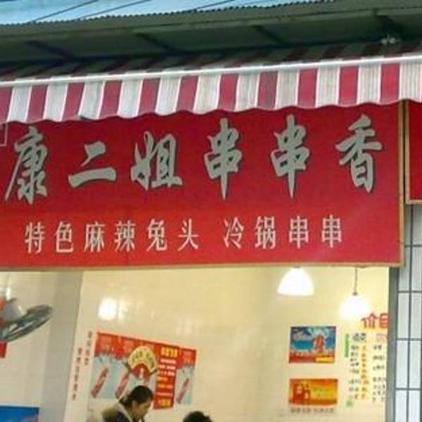 在成都一个人吃火锅有些不划算,锅底价位高,点多了...康二姐家的串串很地道,还上过天天向上的节目,中午来吃虽然人多,倒也不至于排队,辣度选择了中辣,啦啦啦啦啦啦啦~,选择了辣椒面,没有吃油碟,辣上加辣。