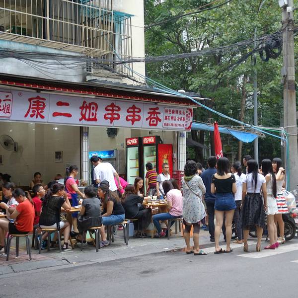 这家康二姐生意极好,到了春天店铺关店休息,所有员工一起去新马泰旅游~只有三个季节可以吃到她家的串串哦~