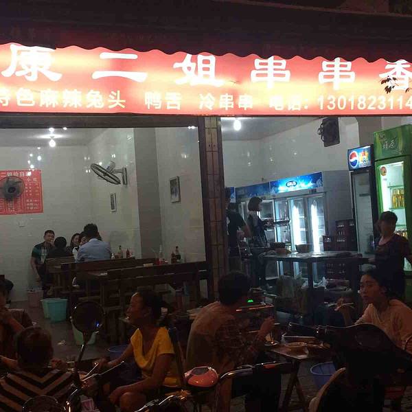 康二姐串串 中道街99号附32号 招牌菜:牛肉、兔头、麻辣串