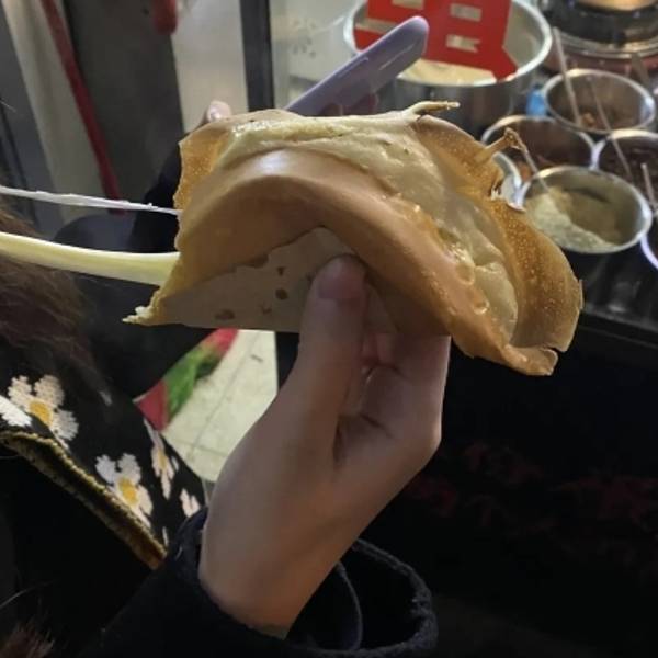 料很足,芝士拉丝,咸甜咸甜的,超好吃!鸡枞菌的也好吃。而且这家蛋烘糕的价格真的很良心,根本停不下来。吃过的都说好*(o^)/*